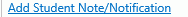 The Add Student Note/Notifications Link allows you to e-mail a guardian or print a note for a student regarding a student's score, attendance, etc.