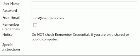 If you would like the Application to remember the Credentials you have entered so you do not have to enter them each time you want to e-mail or print a notification, check the Remember Credentials Check Box.