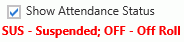 The Show Attendance Status Check Box allows you to view the student's attendance, and view the student's suspension or off-roll status.
