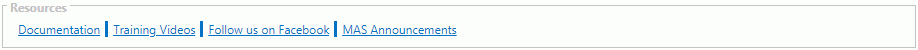 These are quick links to access Documentation, Training Videos or MAS Announcements.