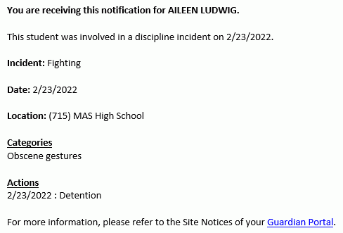 Include Discipline Details: Check the check box to include details in the body of the email. (Please see below for an example.)