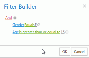 For this additional filter, our details will be Age, greater than or equal to and 16.