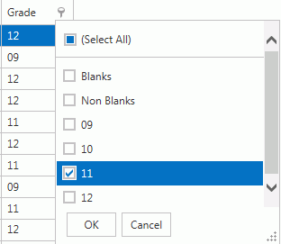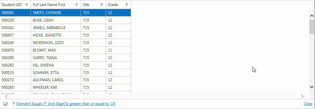 Then press enter on your keyboard. Now only 11th grade students appear in the grid.