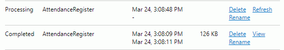 If the Status is Processing, the User can Delete, Rename or Refresh the report.